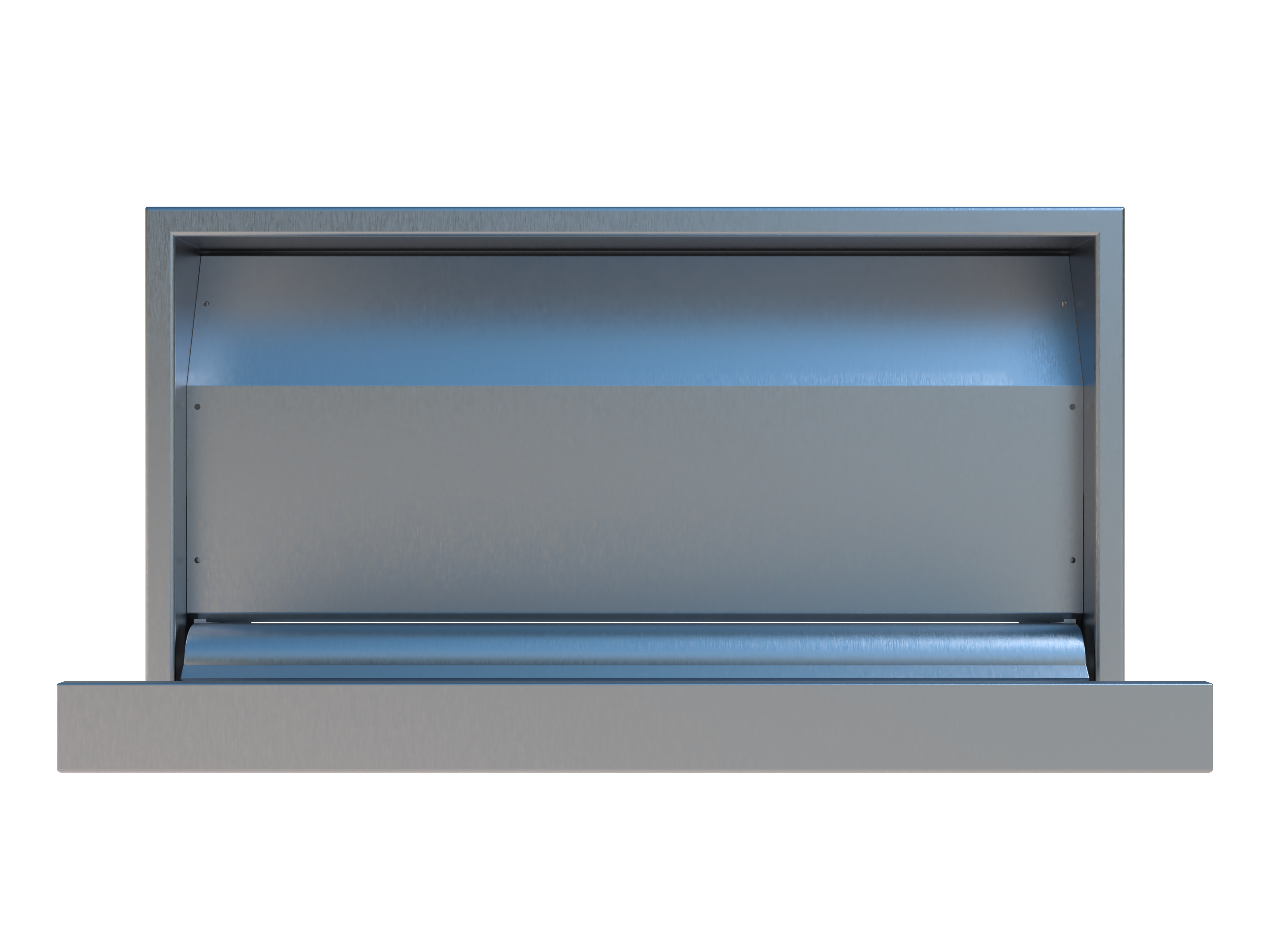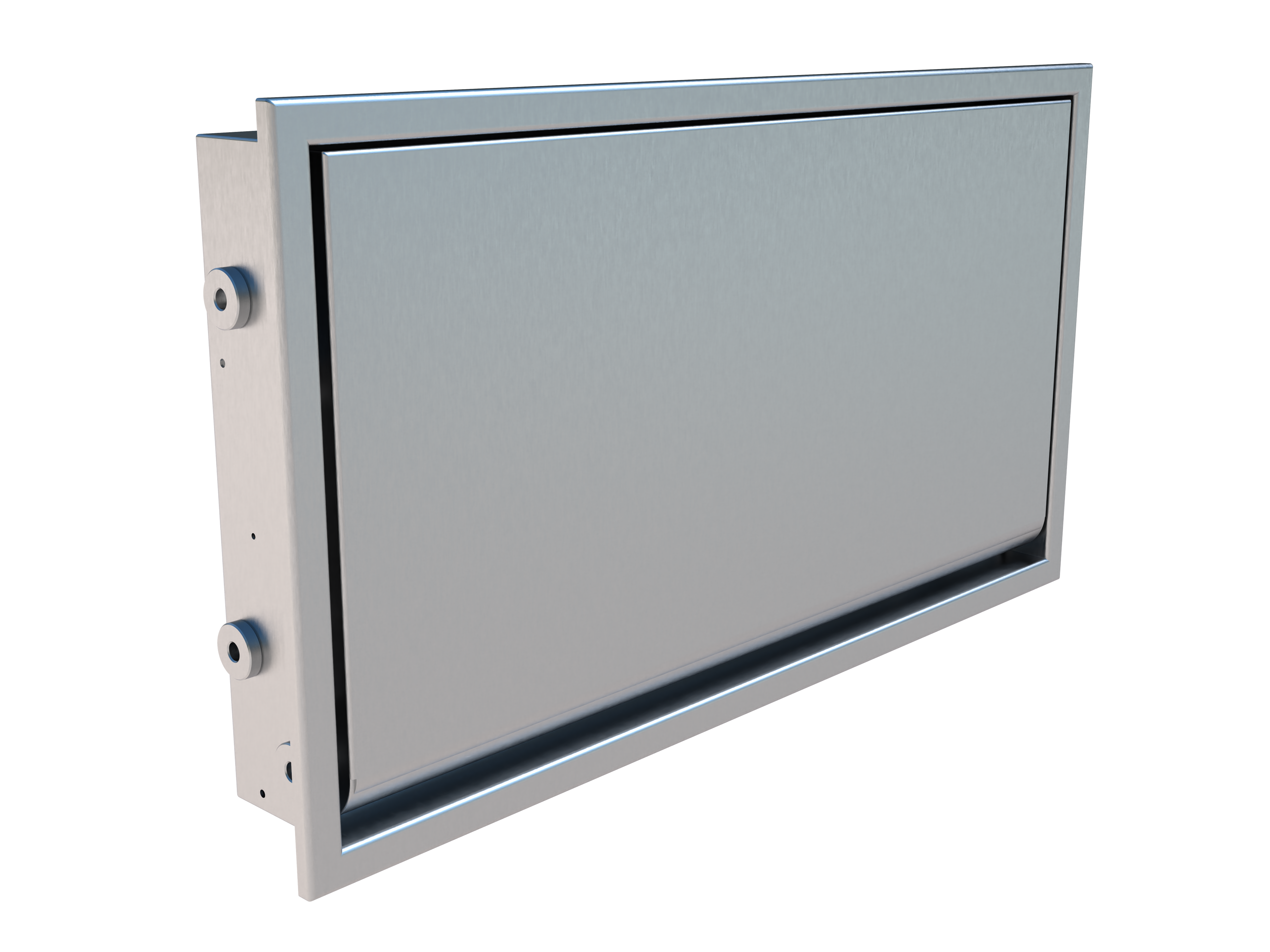 A cast‑in stainless steel baby change table designed to integrate into precast concrete amenity structures. The unit folds flush into the wall cavity and opens to provide a durable horizontal changing platform.